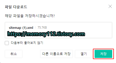 그러면 sitemap.xml 파일을 다운로드할 수 있는데