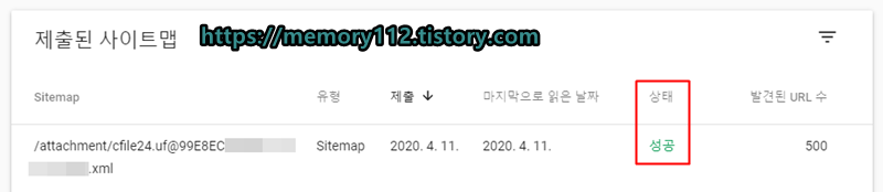 사이트맵 제출 이후 상태가 성공으로 뜬다면 정상적으로 제출된 것이다.