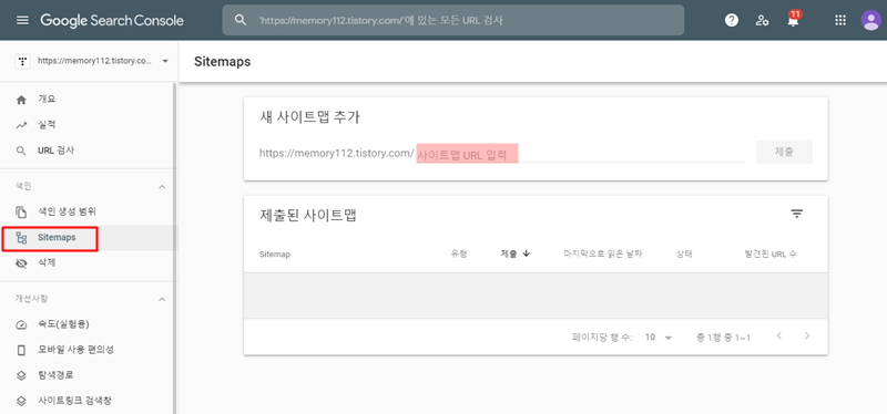 이어서 새 사이트맵 추가에 보이는 사이트맵 URL 입력 부분에