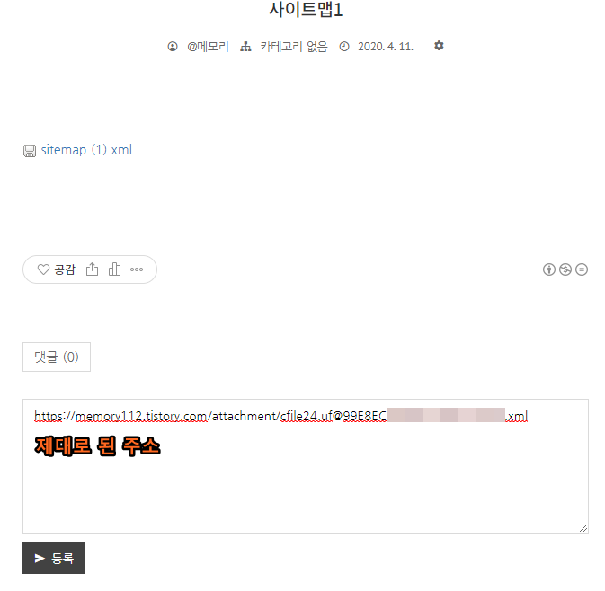 사이트맵 파일을 업로드할 때 꼭 게시글을 비공개로 하고 올리길 바란다.
