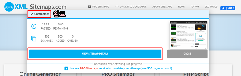 이제 아래에 있는 VIEW SITEMAP DETAILS 버튼을 눌러준다.