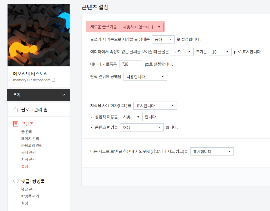 블로그 관리 > 설정 > "새로운 글쓰기를 사용하지 않습니다."로 바꿔준다.