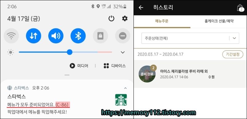 주문번호(C-86)나 스타벅스 닉네임을 불러주면 된다.