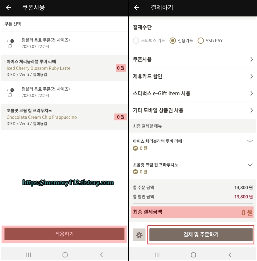 스타벅스에 직접가서 E쿠폰같은 걸로 주문하게 되면