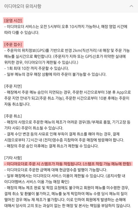 그리고 1회 최대 10잔까지만 주문할 수 있다.