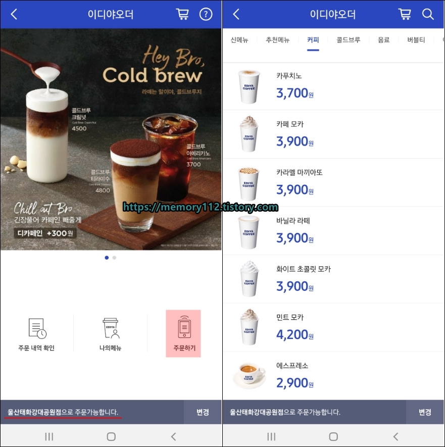 이디야 오더는 이디야 멤버스 앱을 통해