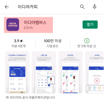 # 이디야 멤버스 어플 사용