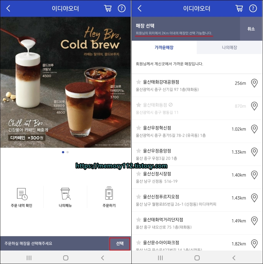 이디야 오더 이용방법