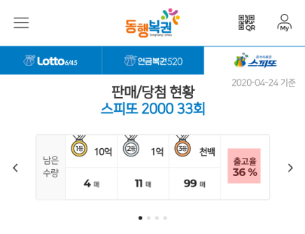 스피또2000 33회차는 20년 04월 07일 화요일부터 판매 중이며,