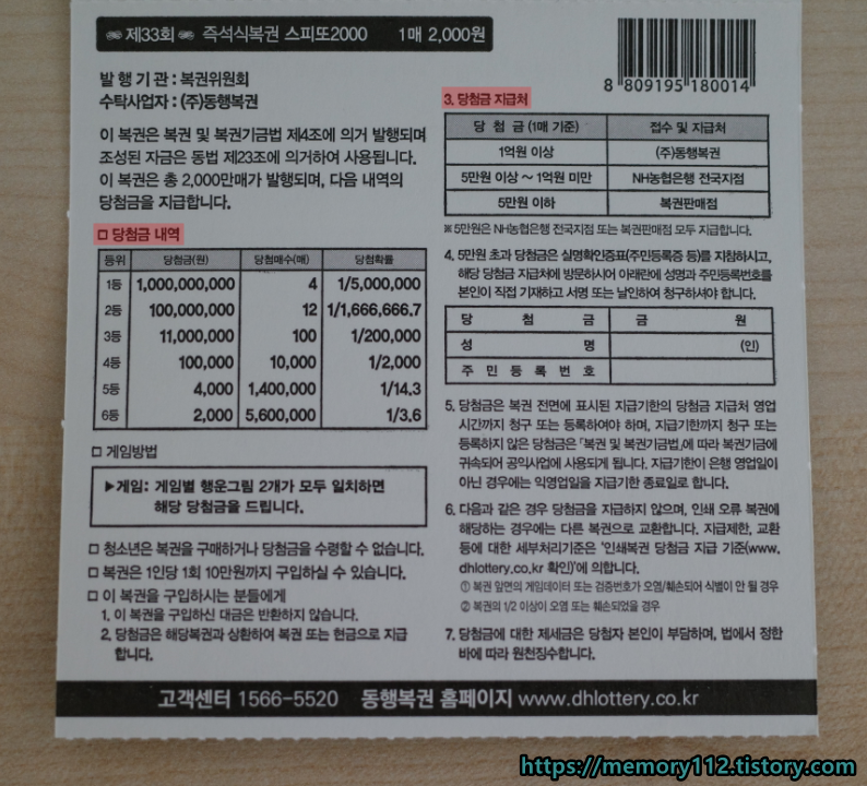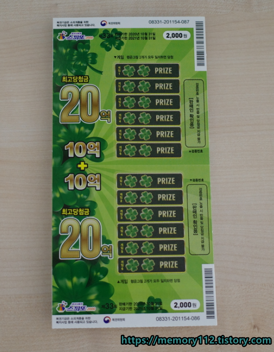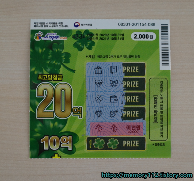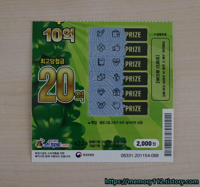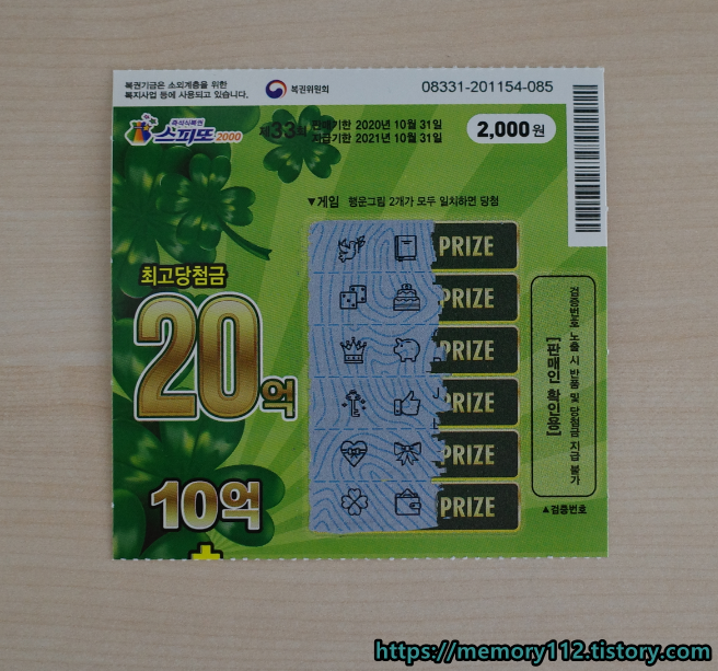 내가 이번에 구매한 스피또2000 33회차 복권이다.