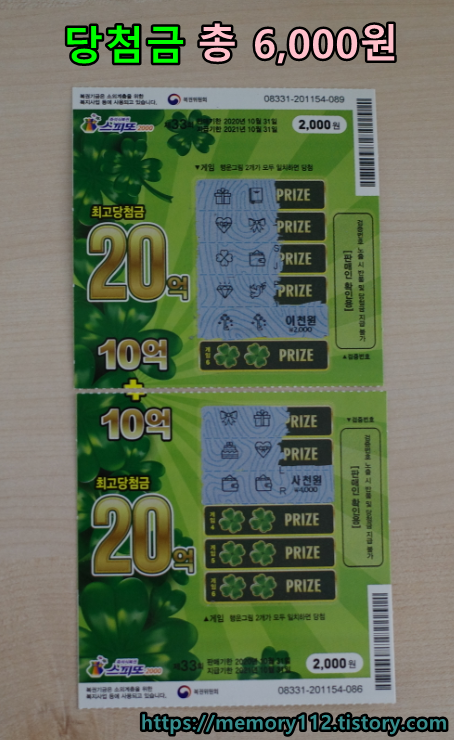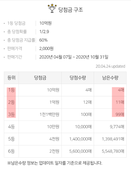 스피또2000 당첨금은 1등 10억(최대 20억),