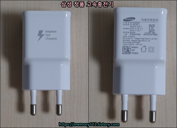 참고로 삼성 정품 고속 충전기 앞면에는 번개 모양 마크과
