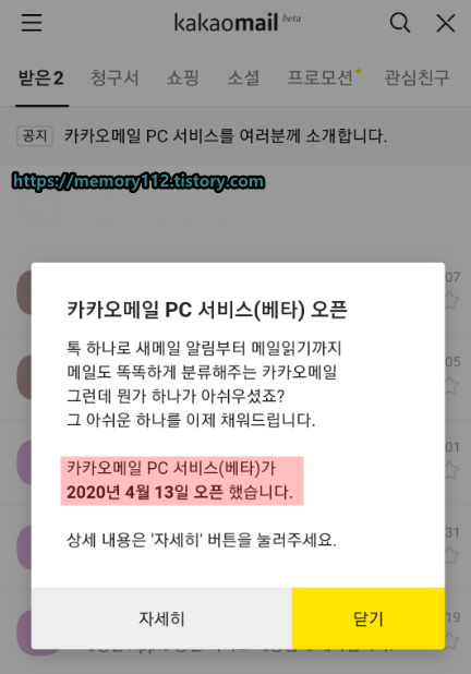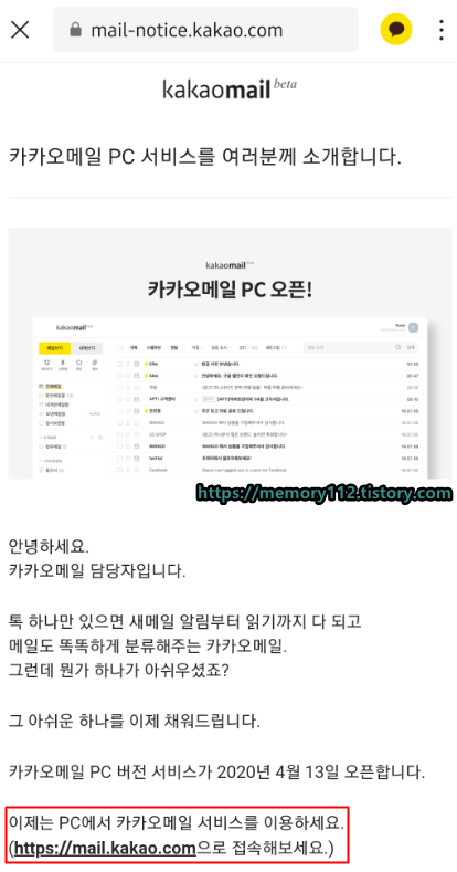 카카오 메일은 원래 모바일에서만 이용할 수 있었는데