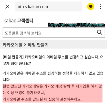 카카오 메일 이메일 주소 변경은 불가능하다.