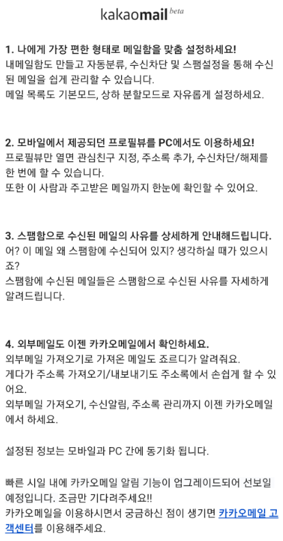 카카오 메일 이용이 크게 불편하지 않을 것으로 생각된다.