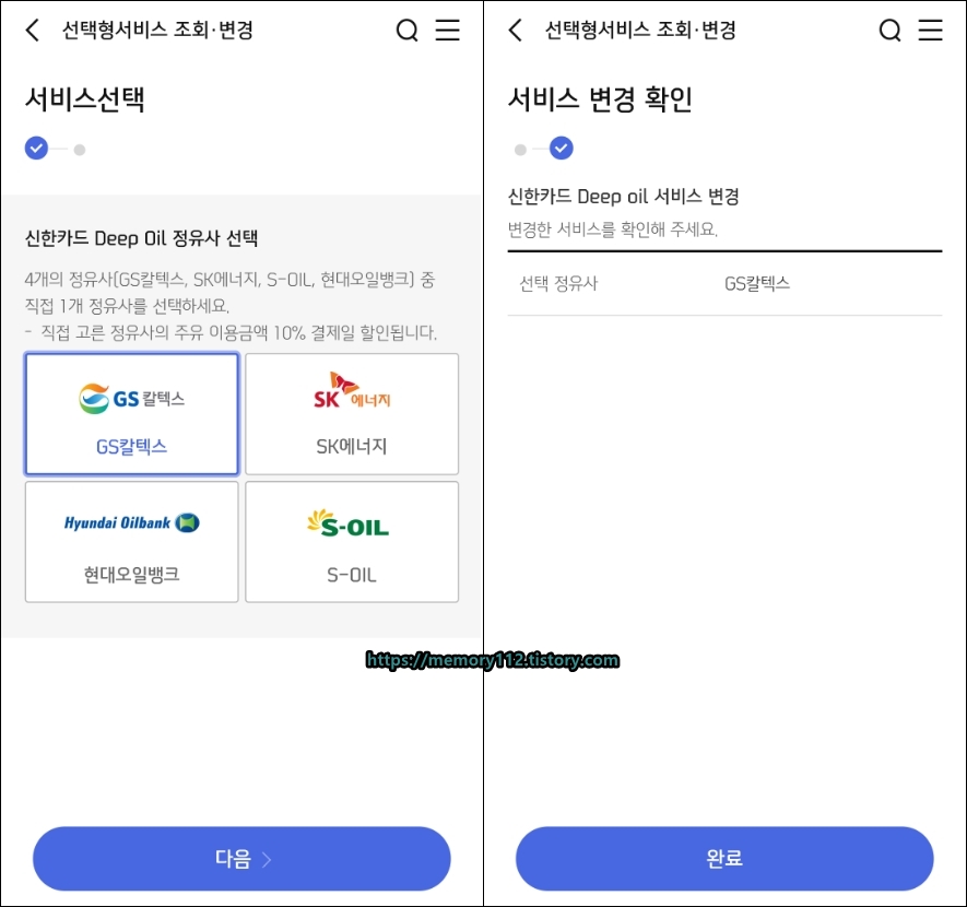 신한 딥오일 카드 정유사 변경방법