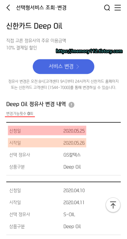 신한 딥오일 카드 정유사 변경은