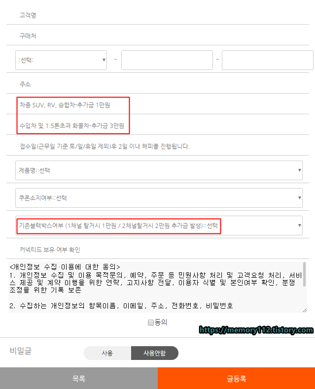 출장 장착 쿠폰 뒷면에 적혀있는 사이트로 접속한 후,