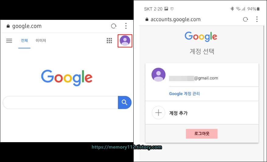 먼저 구글 계정을 로그아웃해줍니다.