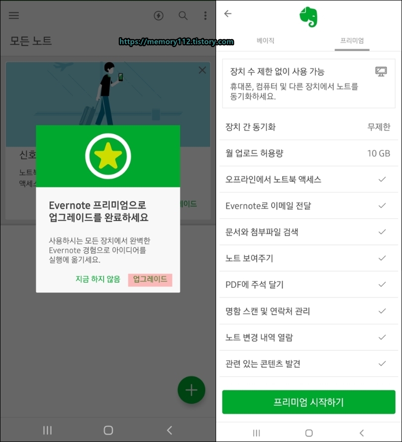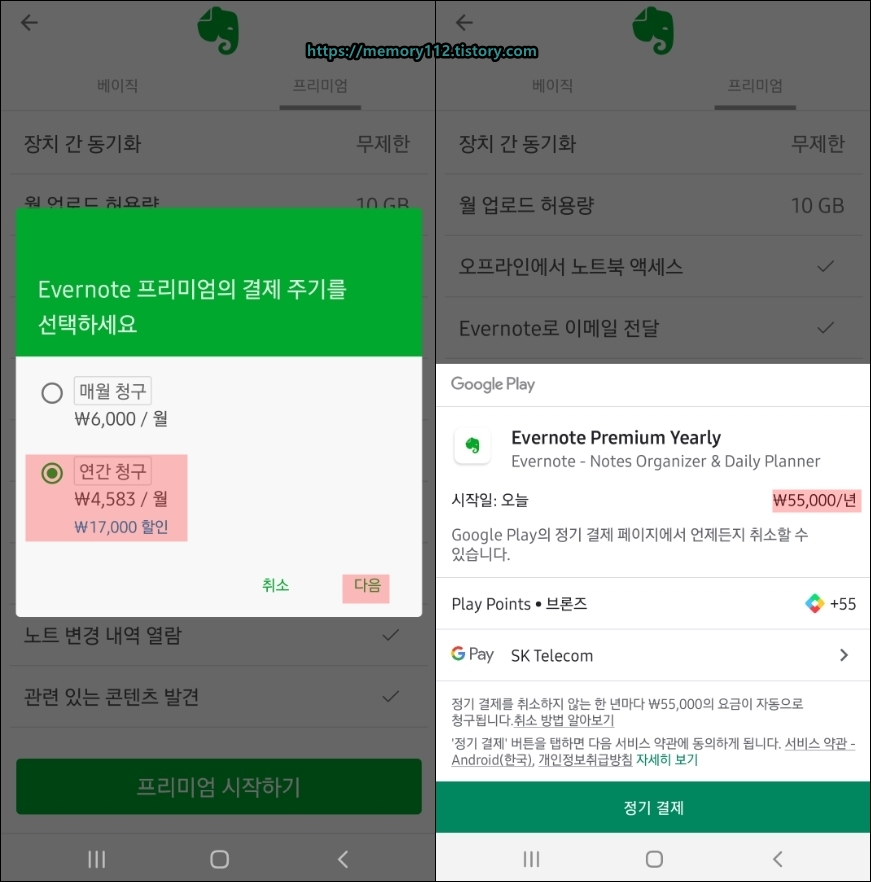 에버노트 프리미엄 요금 모바일로 지불할 경우