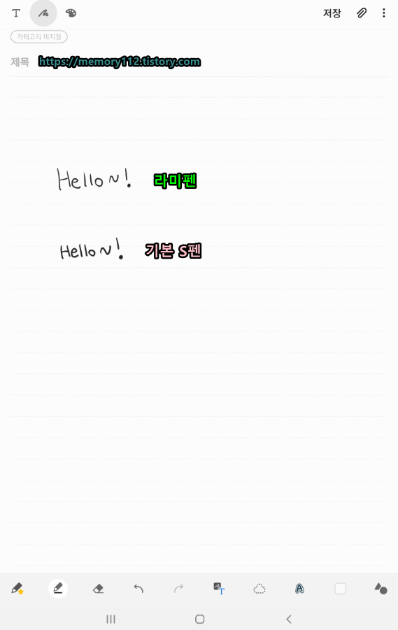 위는 라미펜으로 필기한 모습이고, 아래는 기본 S펜으로 필기한 모습이다. 라미펜이 기본 S펜보다 약간 얇게 써진다고 해야 하나? 아무튼 그런 느낌이다.