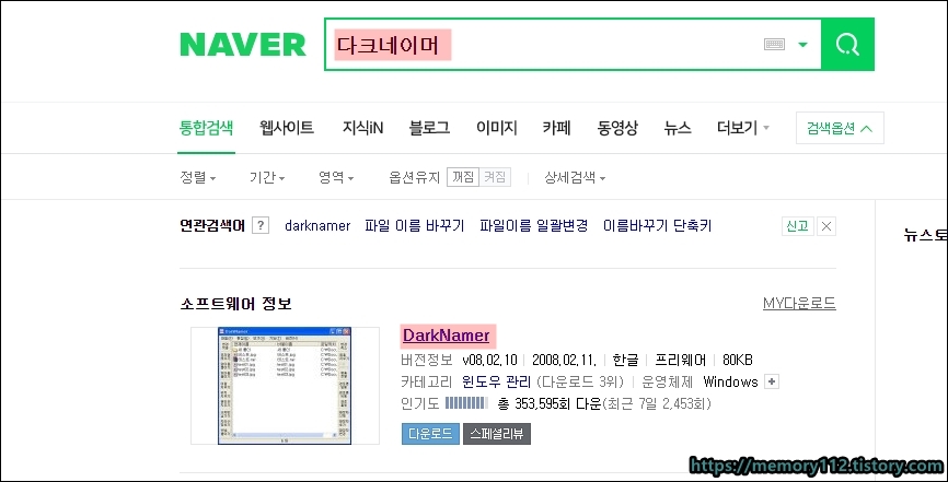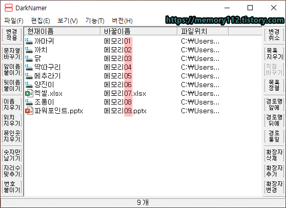 다크네이머라는 프로그램을 이용하면 파일 이름을 더 쉽고 간편하게 바꿀 수 있습니다.