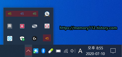 이렇게 CPU 온도 확인 아이콘을 밖으로 꺼내 고정시켜놓을 수도 있어요.