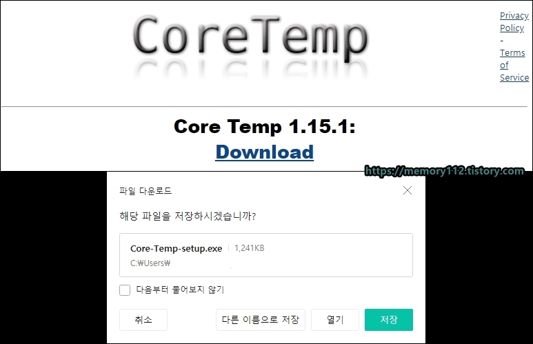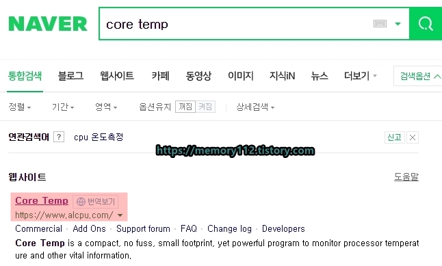 먼저 인터넷에 'core temp'를 검색한 후, 해당 웹사이트에 접속해줍니다.