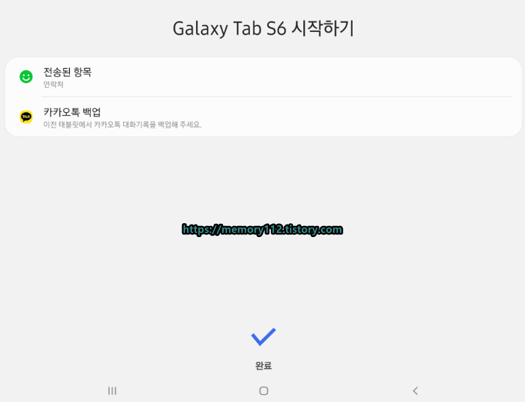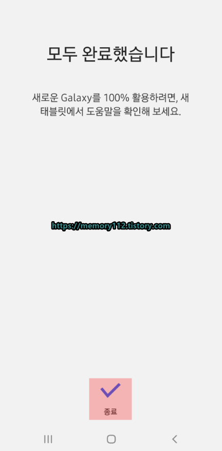 조금 기다리니 이동한 데이터 정리가 완료되었다. 마지막으로 아래에 완료 버튼을 누르면 해당 기기로 이동된 데이터들을 확인할 수 있다.