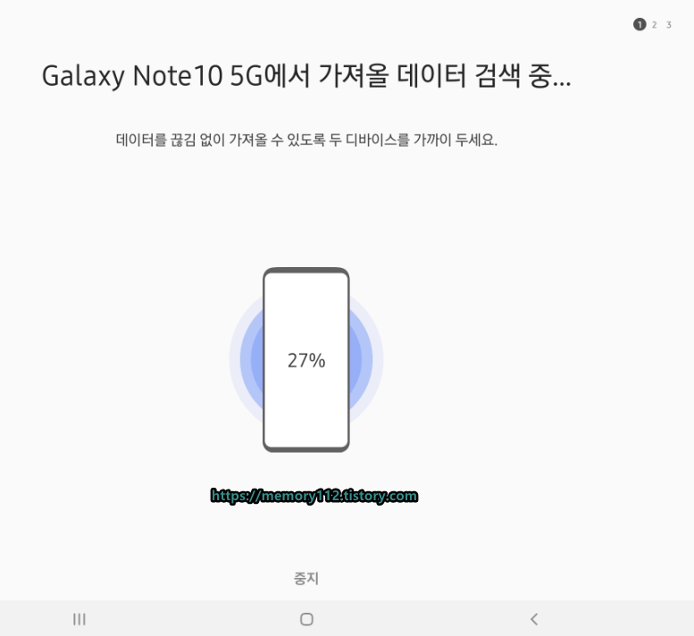 데이터를 보내는 갤럭시 노트 10 쪽에서도 이러한 화면이 뜬다.