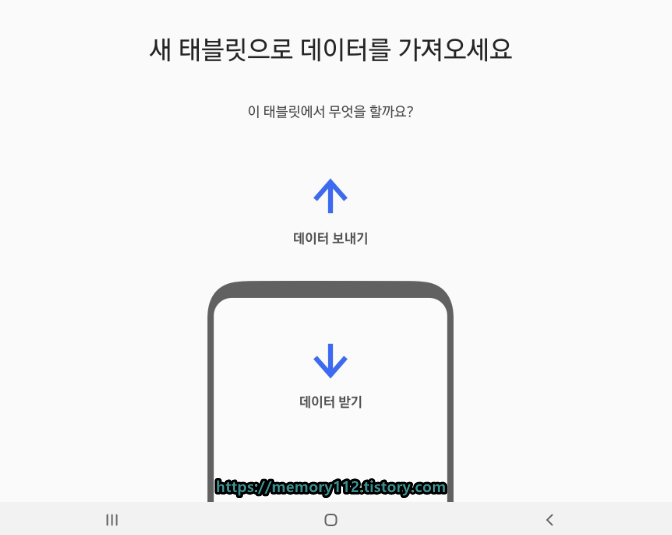 갤럭시 노트 10에 있는 데이터를 갤럭시 탭S6로 보낼 것이기 때문에. 데이터 보내기를 선택해준다.
