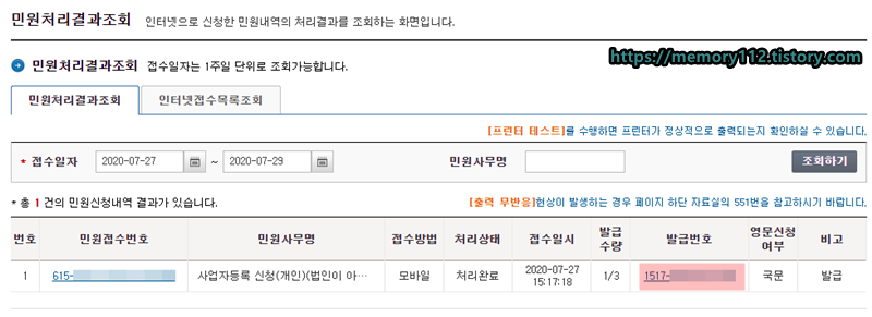 사업자등록증 출력하기