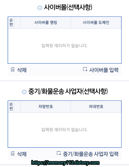 사이버몰과 중기/화물운송 사업자는 그냥 넘어가 줍니다.