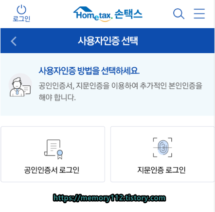 공인인증서 또는 지문인증을 통해 로그인을 해줍니다.