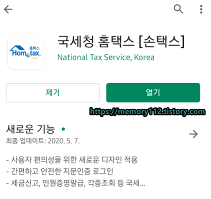 이제부터 본격적으로 사업자등록 신청을 하러 가봅시다. 먼저 국세청 홈택스 앱을 실행시켜줍니다.