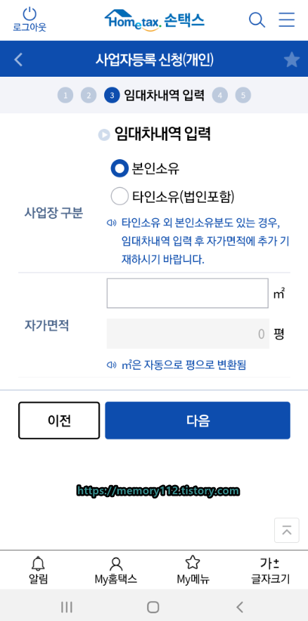 사업장 구분을 입력해줍니다. 저는 본인소유를 선택했어요.