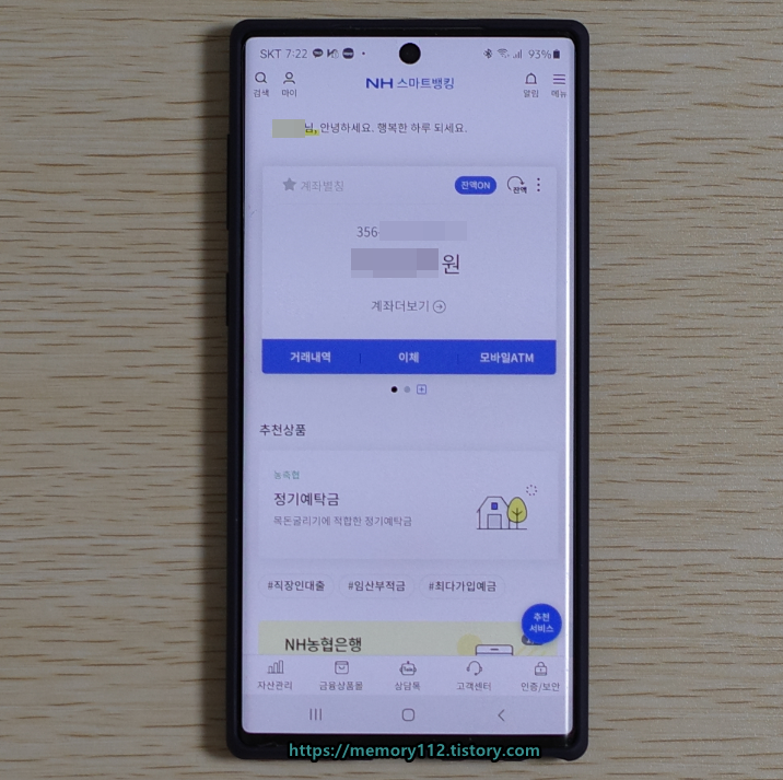 모바일 뱅킹 앱 로그인도 문제없이 잘되네요. 이제부터 인터넷이나 모바일로 돈을 이체할 수 있고, 계좌 거래 내역도 손쉽게 확인할 수 있어서 좋네요.