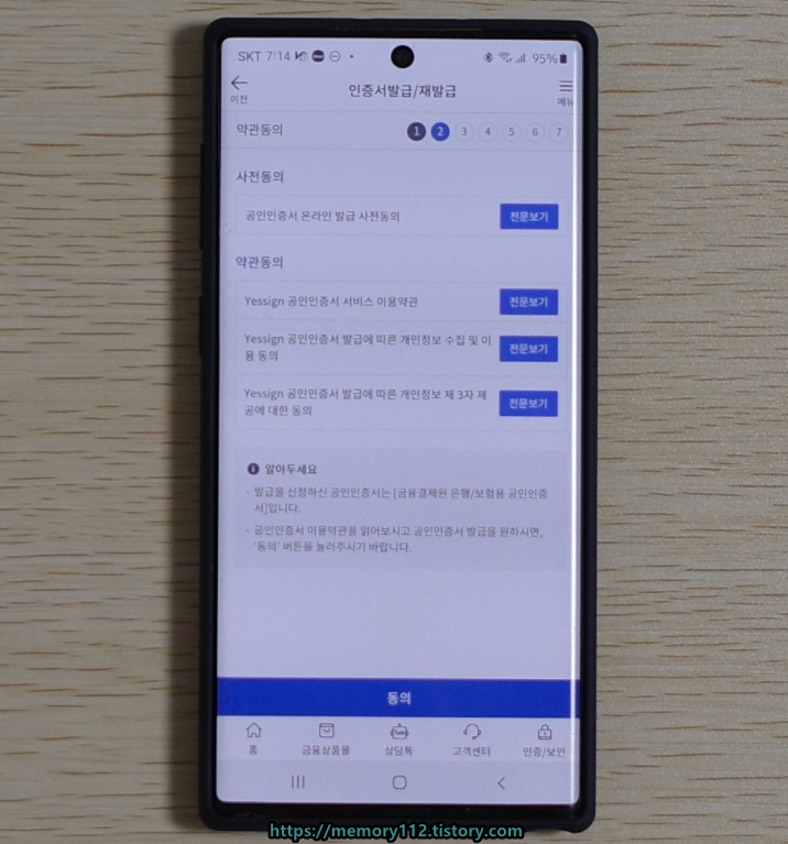 이용 약관에 동의한 후, 아래에 동의 버튼을 눌러줍니다.