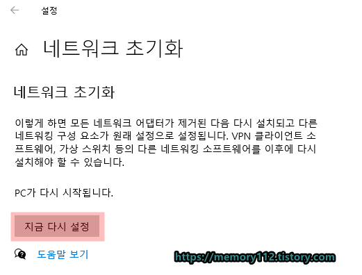 '지금 다시 설정' 버튼을 눌러줍니다.