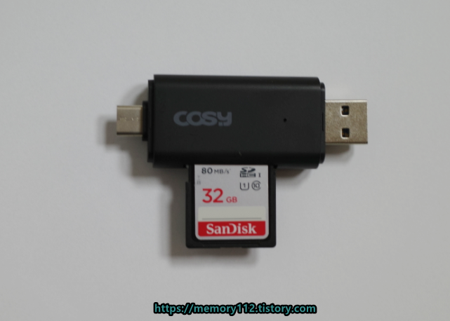 이제 본격적으로 SD카드 리더기를 사용해볼까요? SD카드 리더기에 SD카드 또는 마이크로 SD카드를 꽂아줍니다. 참고로 일반 SD카드와 Micro SD카드를 동시에 꽂아 사용할 수는 없습니다.
