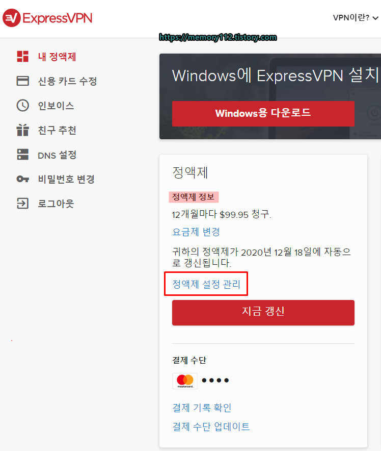 ExpressVPN 자동 결제 및 갱신 해지방법