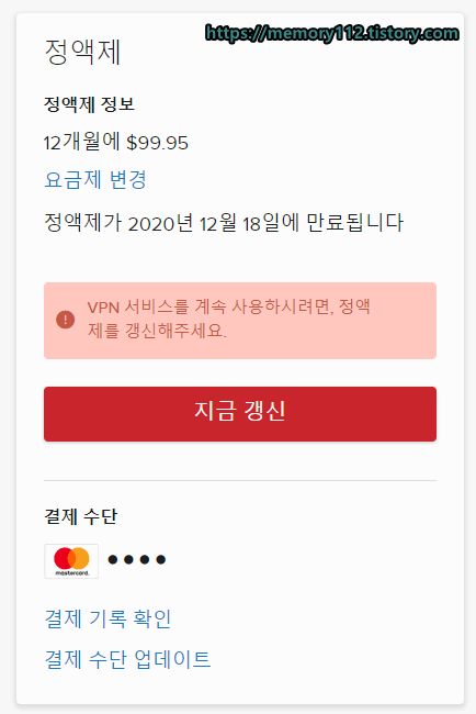 고민 끝에 나는 ExpressVPN 자동 결제(갱신)를 해지하기로 마음먹었다. 익스프레스VPN 이용에 크게 불만은 없었지만 다른 유료 VPN 프로그램도 이용해보고 싶었기 때문이었다. 이 돈이면 다른 유료 VPN도 무리없이 사용할 수 있을 것이다.