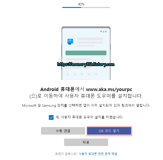 참고로 'www.aka.ms/yourpc'로 들어가면 위와 같이 '사용자 휴대폰 도우미' 설치 화면으로 이동됩니다. 해당 앱은 웬만하면 기본적으로 설치되어있을 것입니다. 설치되어있지 않다면 해당 앱을 설치해주세요.