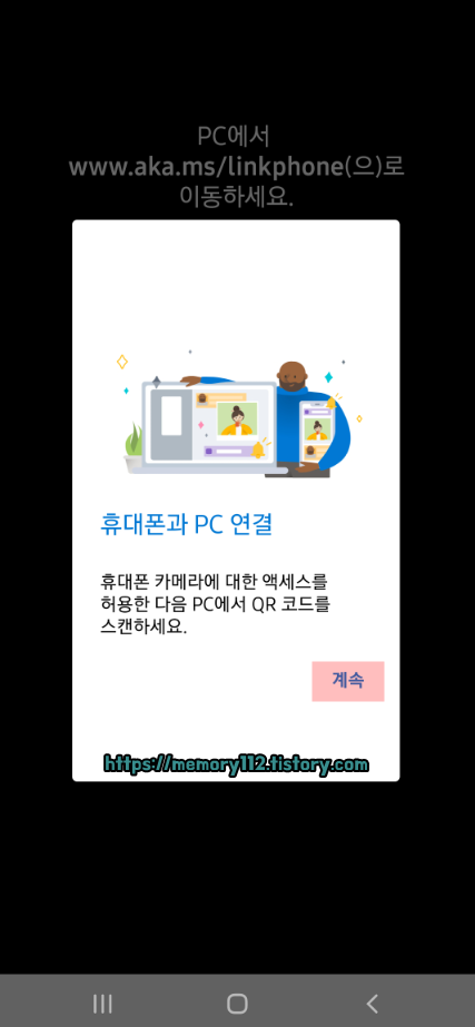 PC 설정이 끝났다고 완전히 끝난 것은 아닙니다. 스마트폰에서 해야 하는 설정이 아직 남아있죠. 그것은 바로 '앱 사용 권한 허용'입니다. 일단 여기서는 계속 버튼을 눌러주세요.