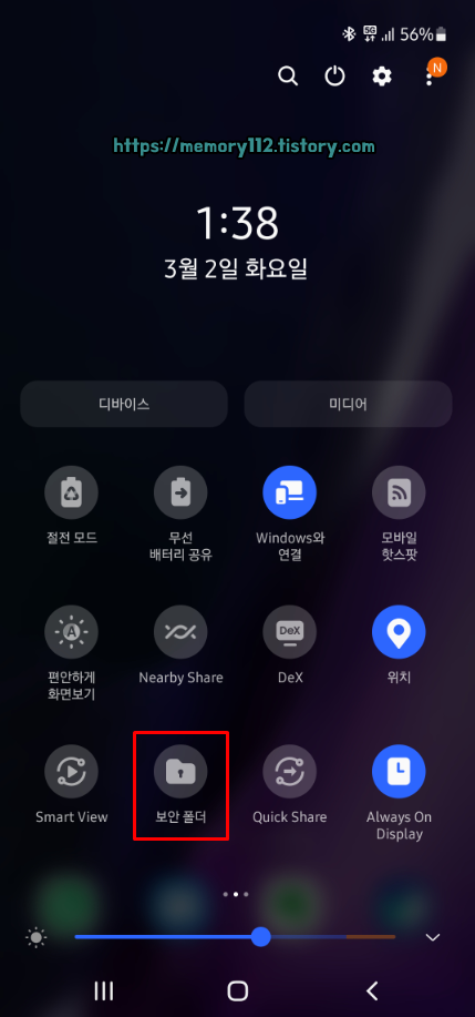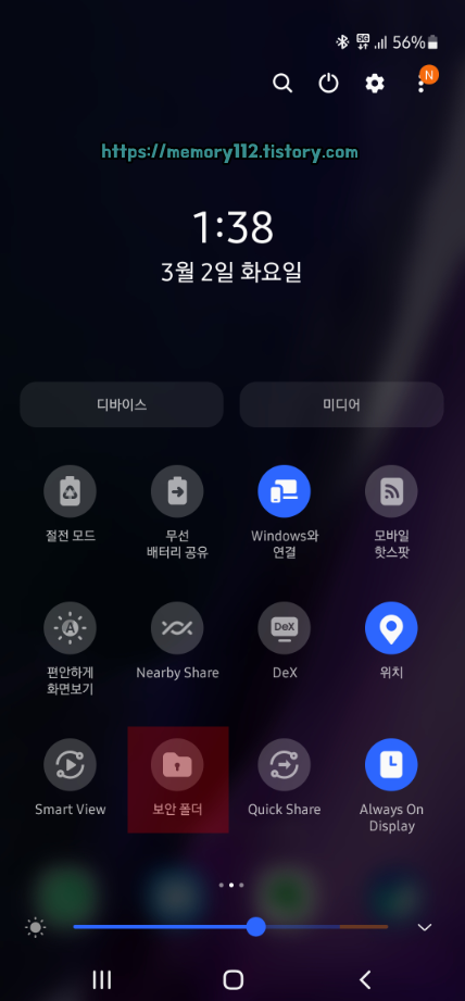 먼저 상단바를 내리면 보이는 '보안 폴더'를 터치해줍니다.