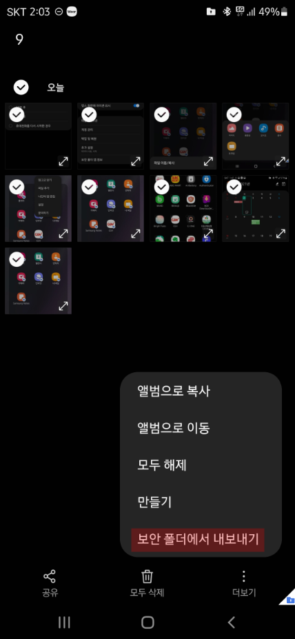 사진이 잘 들어갔는지 확인해보기 위해 보안폴더에 있는 갤러리로 들어가 봤습니다. 아까 갤러리에서 보낸 사진들이 문제없이 잘 들어가 있다는 것을 알 수 있습니다.