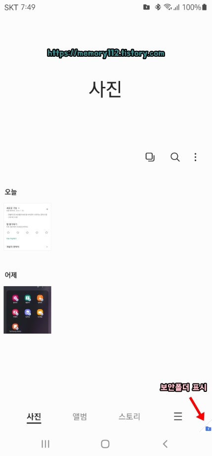 그럼 이제 보안폴더에 있는 갤러리로 사진이 잘 이동되었는지 확인을 한 번 해볼까요?