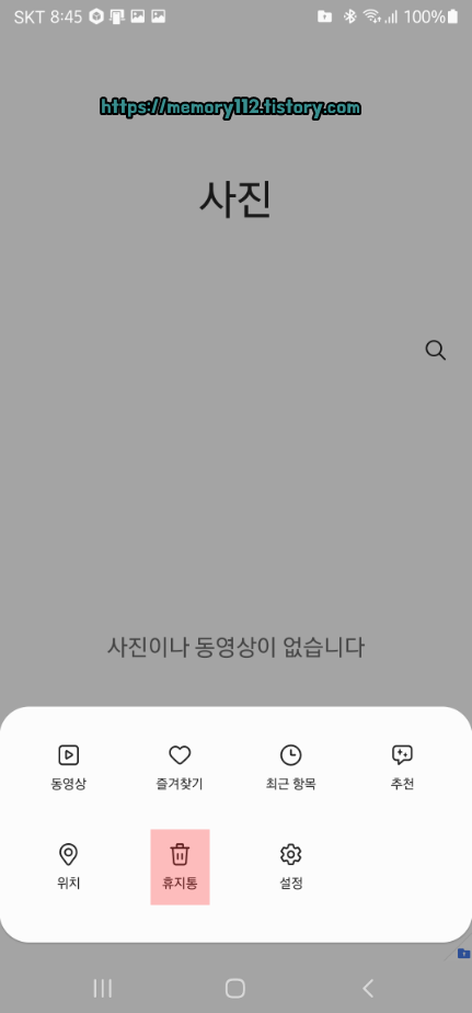 그리고 보안폴더 갤러리에 있는 사진을 삭제하게 되면 보안폴더 갤러리에 있는 휴지통으로 이동됩니다. 기본적으로 내장된 갤러리 휴지통으로는 가지 않아요.