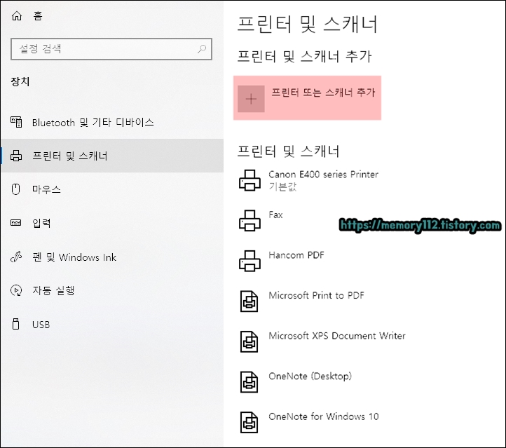 프린터 및 스캐너 탭으로 이동한 후, 상단에 보이는 "프린터 또는 스캐너 추가"를 눌러줍니다. 그러면 스캐너 드라이버가 자동적으로 잡힐 것입니다.