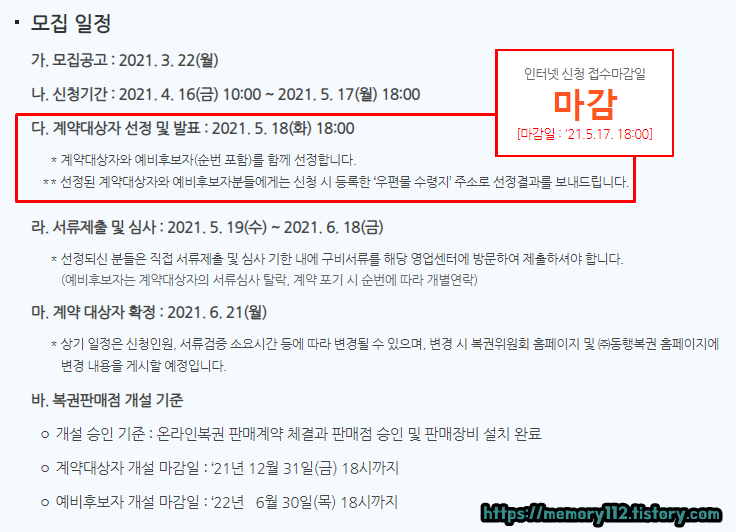 인터넷으로만 신청이 가능했던 2021 로또 판매인 신청이 종료되었습니다. 계약 대상자 발표일시는 신청일 종료 다음날인 21년 05월 18일 화요일 18시인데요. 이때 계약 대상자는 물론이고, 예비 후보자까지 함께 선정됩니다.